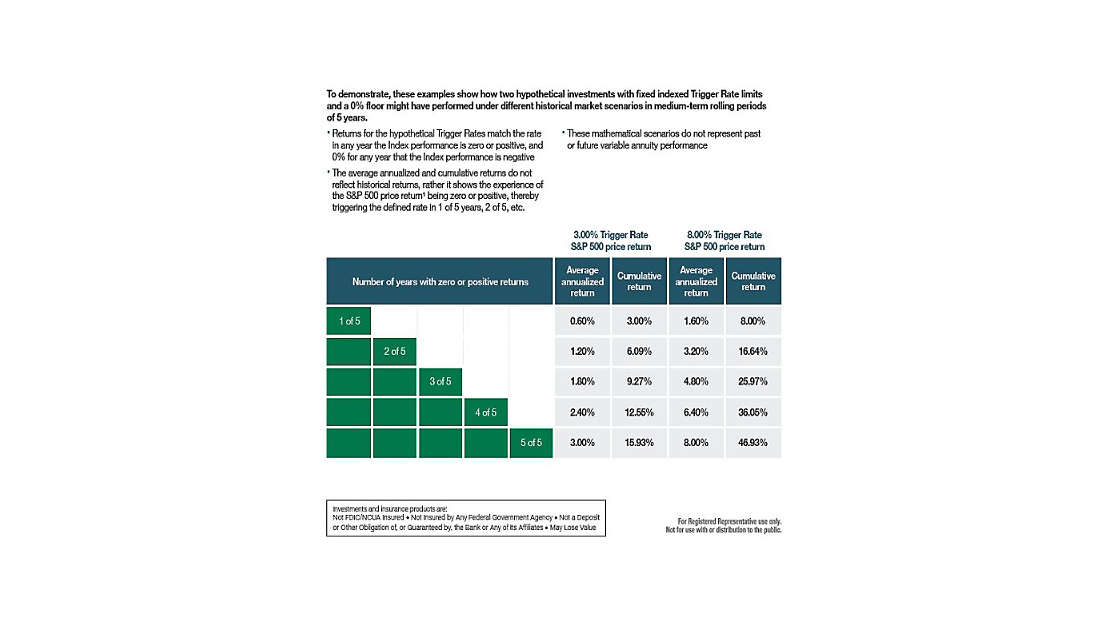 - Key Data: If a 6.50% Flat Rate was credited 3 out of 5 years, the average annualized return is 3.90% and cumulative return is 20.79%—competitive with current FDA rates.