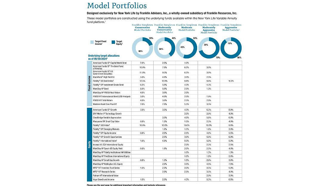 - Model Portfolios utilize underlying funds within the NYL VA Fund Platform for tailored investment solutions.